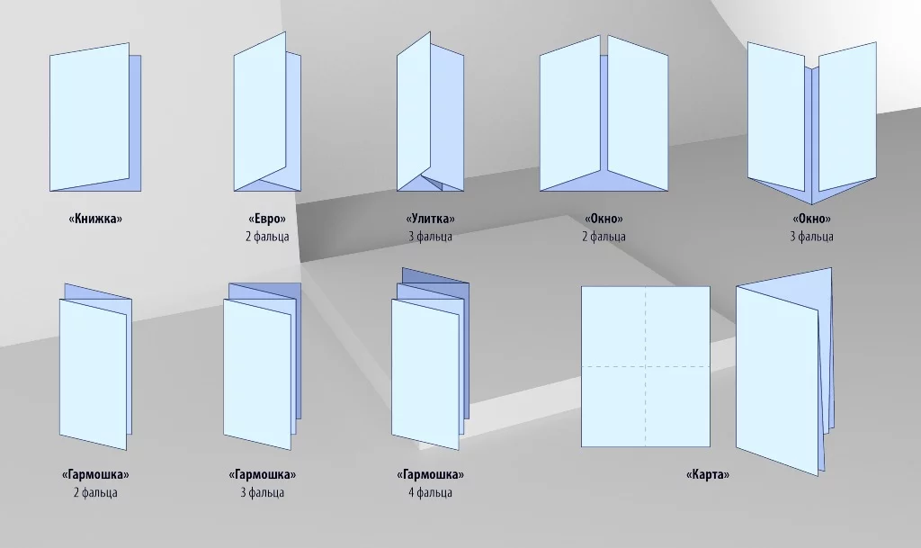 ТАК ЖЕ БУКЛЕТЫ РАЗЛИЧАЮТ ПО ТИПУ СКЛАДЫВАНИЯ: